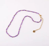 Le collier Amethyst Glow met en valeur l’élégance intemporelle de la pierre naturelle d’améthyste, réputée pour sa couleur profonde et vibrante.