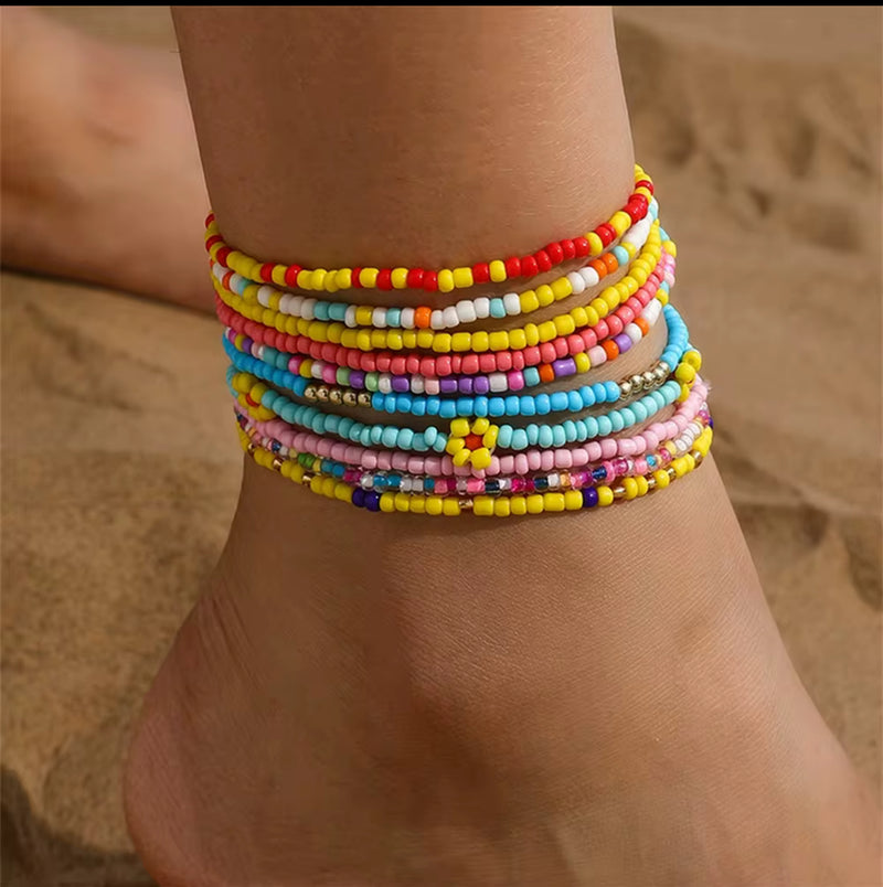 Ces bracelets de cheville sont composés de perles multicolores aux tons estivaux, minutieusement assemblées pour créer un look fun, solaire et totalement tendance. Parfaits pour la plage, les festivals ou un style bohème chic, ils s’adaptent à toutes les chevilles et ne passent jamais inaperçus.