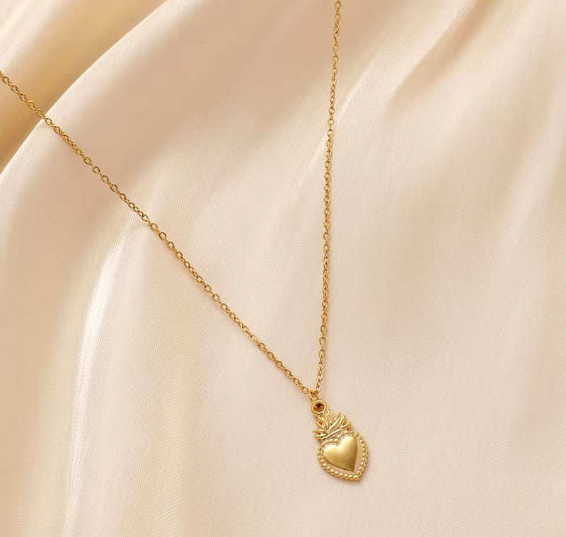 Un coeur sacré doré ,version moderne et élégante.La flamme représente la passion, le coeur symbolise la douceur : un bijou puissant et féminin.