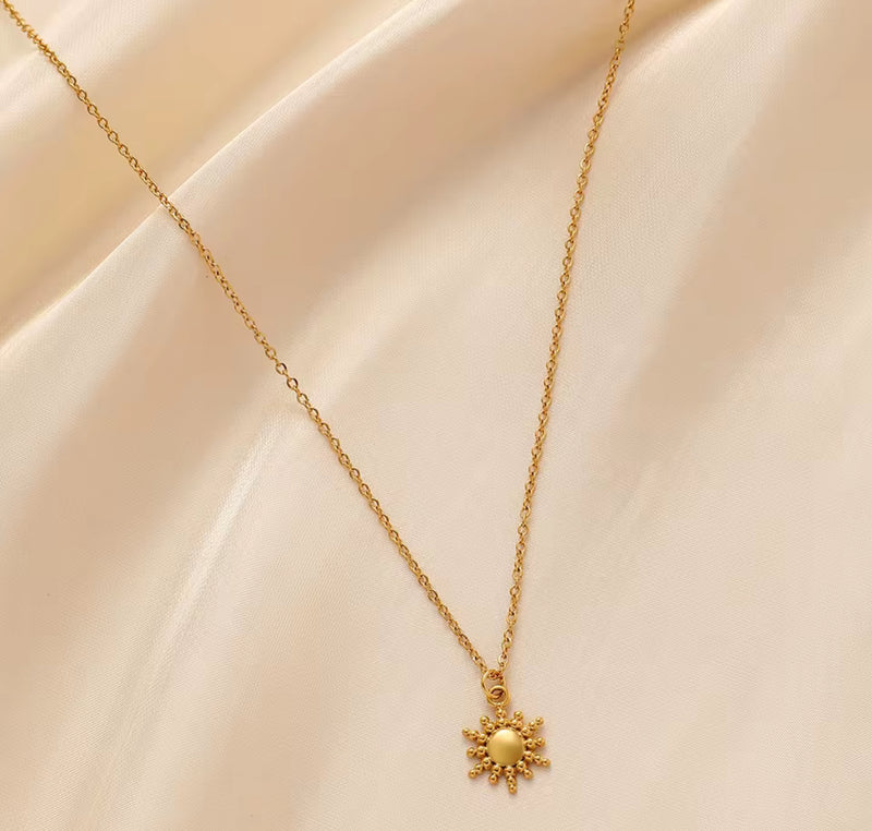 UN médaillon doré inspiré des symboles anciens: un soleil rayonnant qui guide , protège et illumine.Une pièce forte , élégante et intermporelle.
